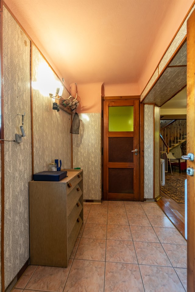 Okna PCV i drewniane starszego typu. Dach pokryty papą.