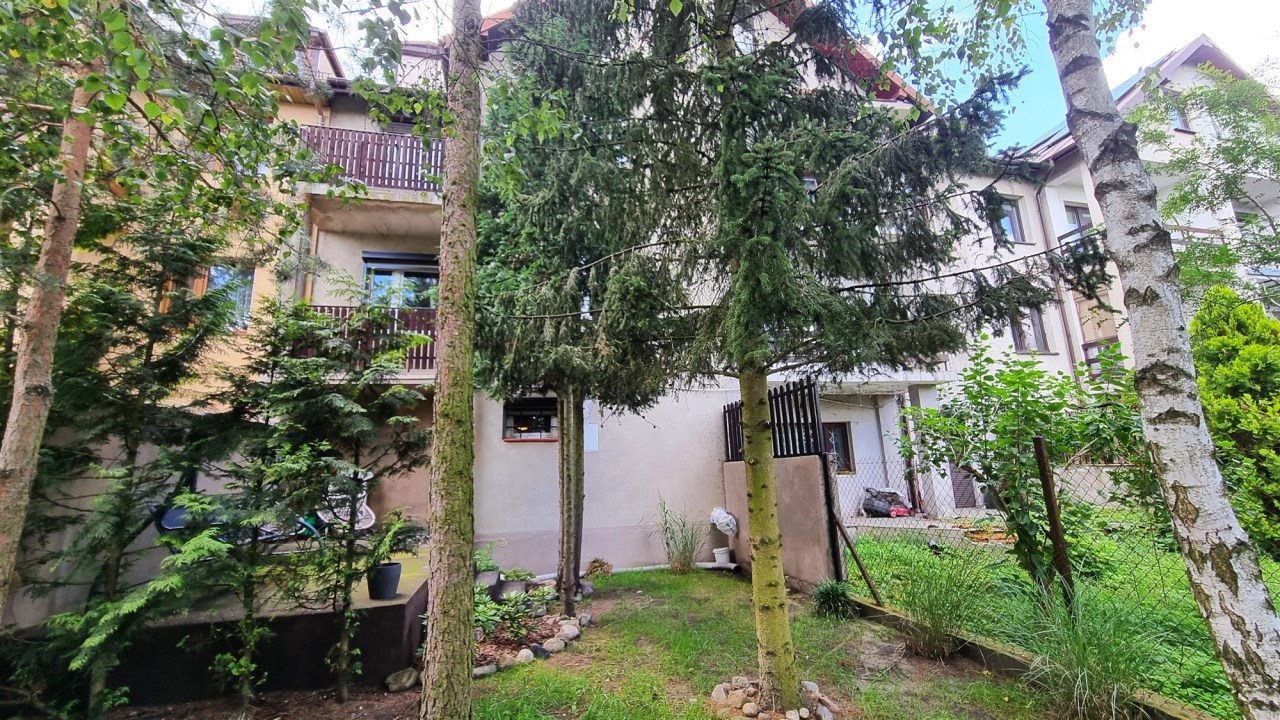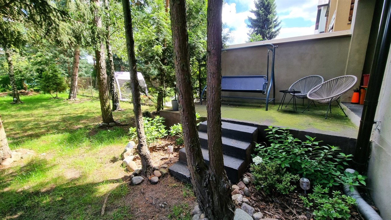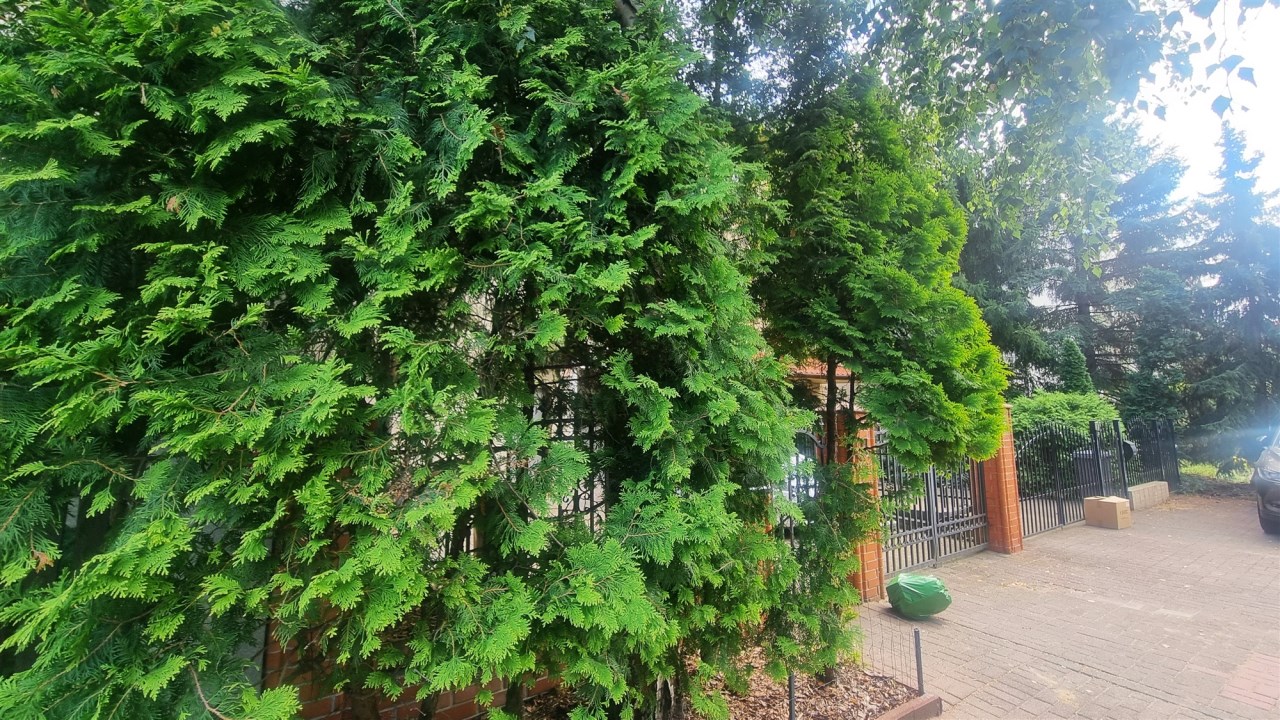 - ZAGOSPODAROWANIE DZIAŁKI/NASADZENIA: ogród - trawa i iglaki, częściowo wysypane kamyki, ogród oddzielony od sąsiadów wysokimi iglakami