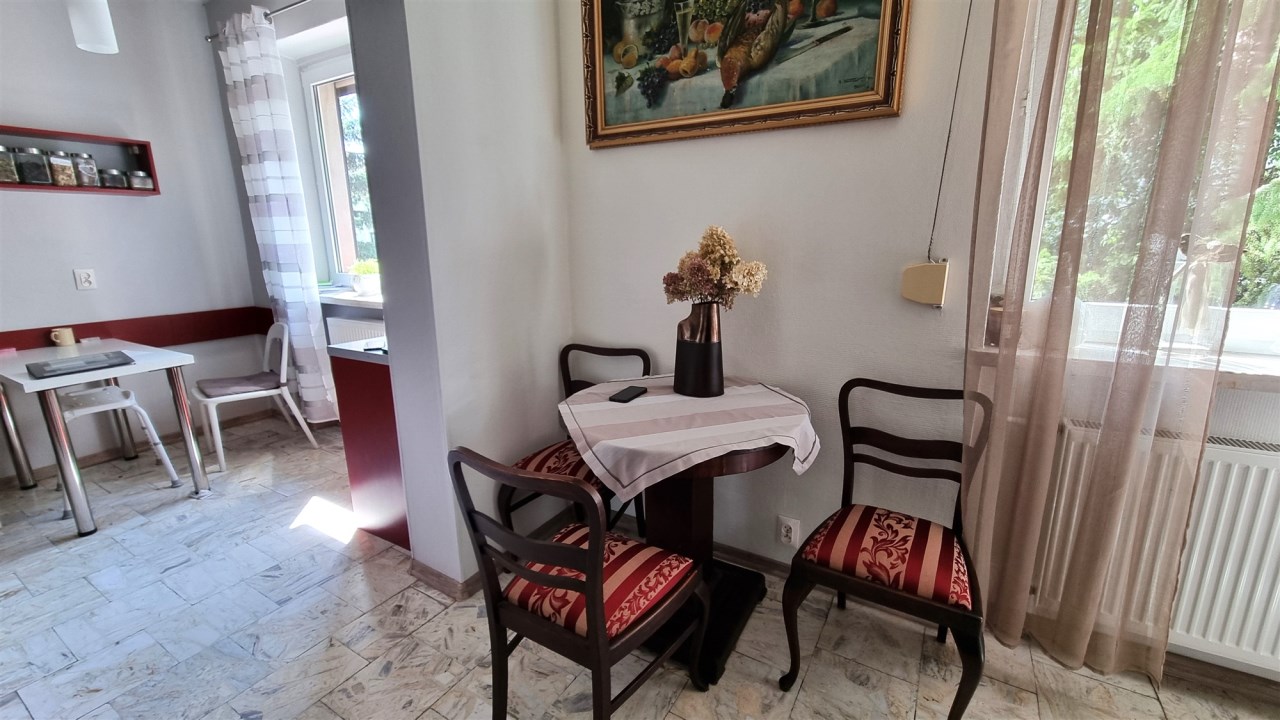 POKOJEM/JADALNIĄ 10 m, podłoga płytki marmur łamany, ściany glazura, gładzie gipsowe, okno PCV , roletki okienne + rolety zewnętrzne,