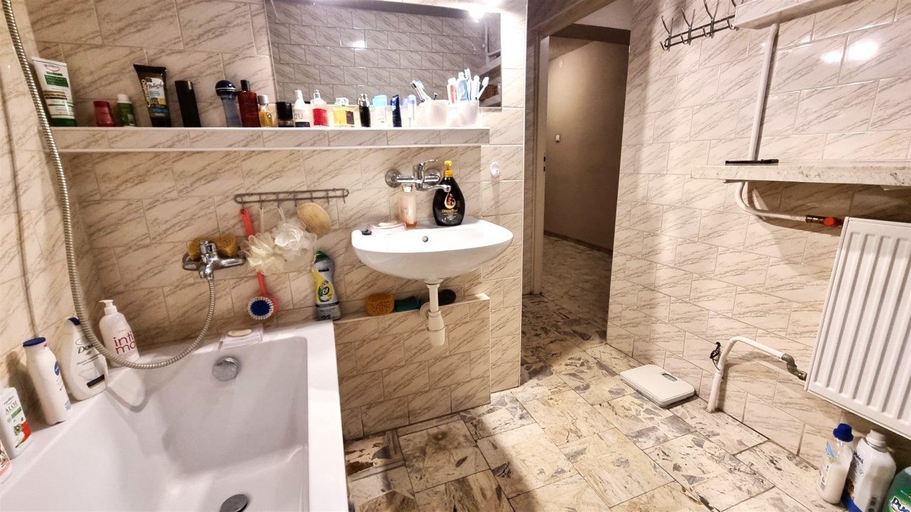 - ŁAZIENKA/PRALNIA - z wydzielonym WC 8,1 m, wanna, umywalka, podłoga marmur łupany, ściany glazura