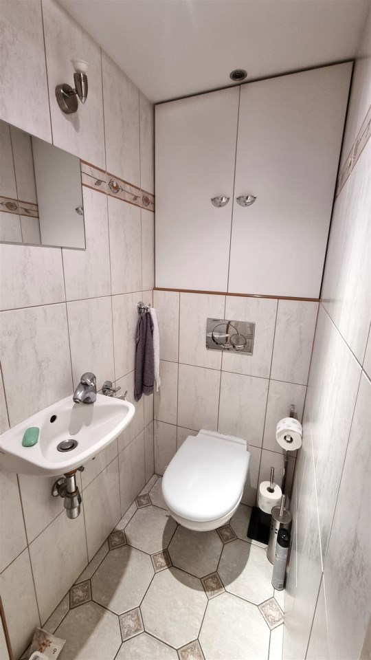 - WC z sedesem i umywalką, , glazura, terakota