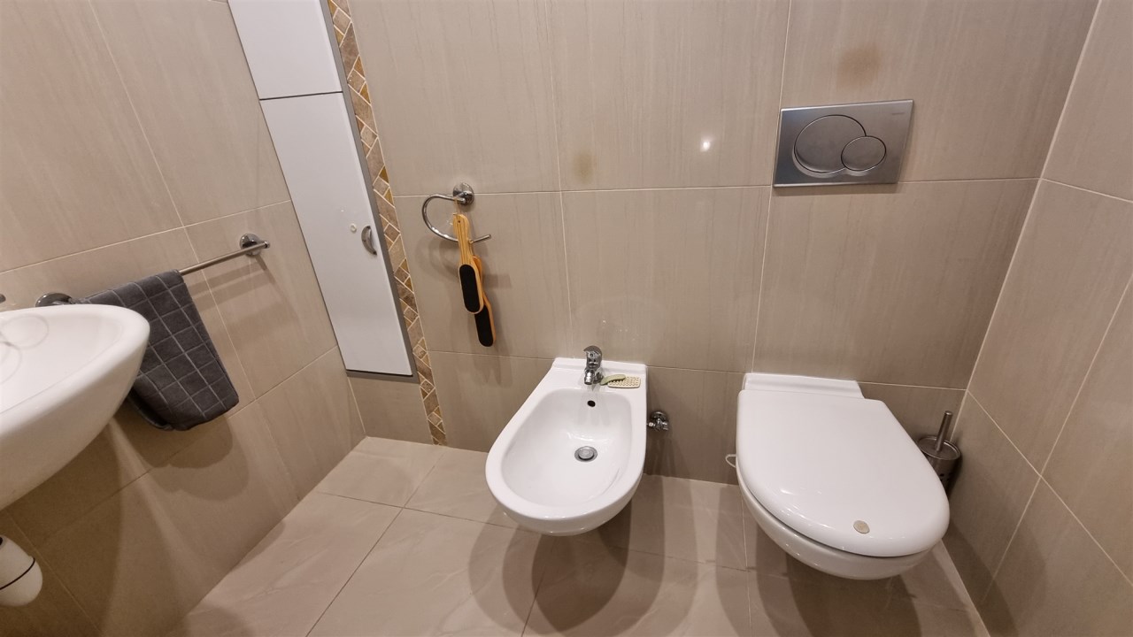 WC - z umywalką, sedesem i bidetem, podłoga terakota, ściany glazura