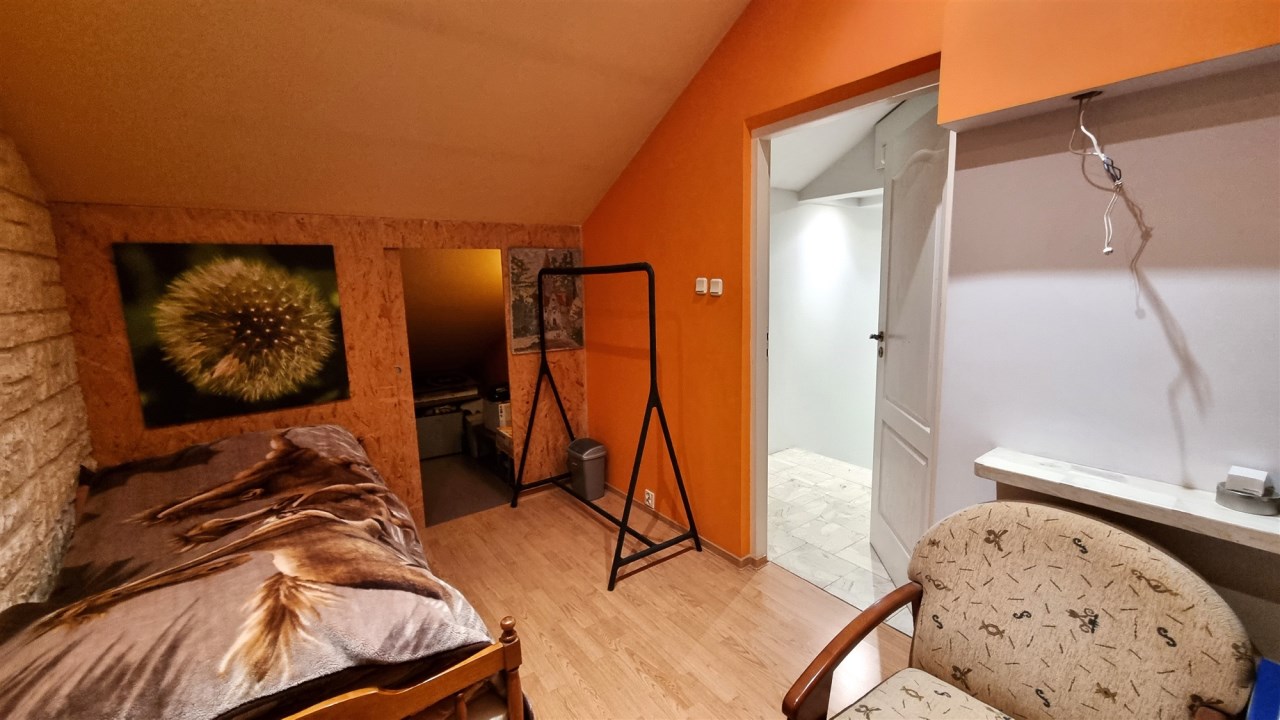 - POKÓJ ok. 10 m : ściany gładzie gipsowe, podłoga panele, obok WC
