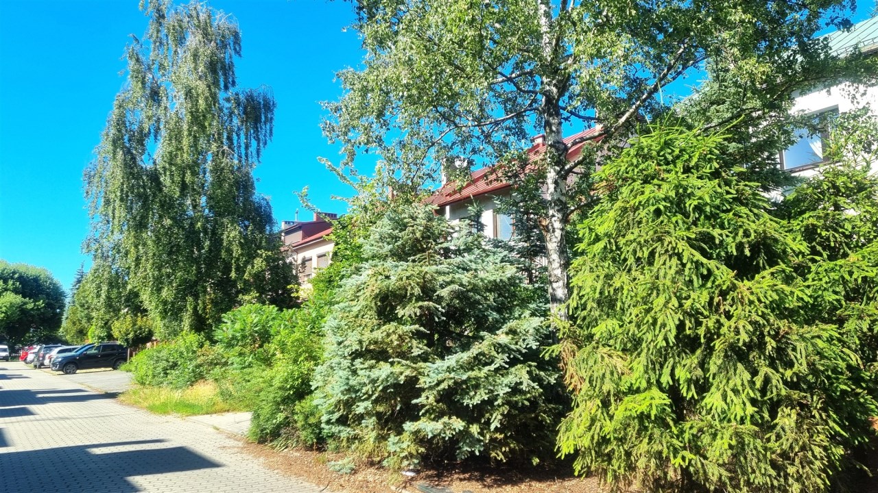 - ZAGOSPODAROWANIE DZIAŁKI/NASADZENIA: ogród - trawa i iglaki, częściowo wysypane kamyki, ogród oddzielony od sąsiadów wysokimi iglakami