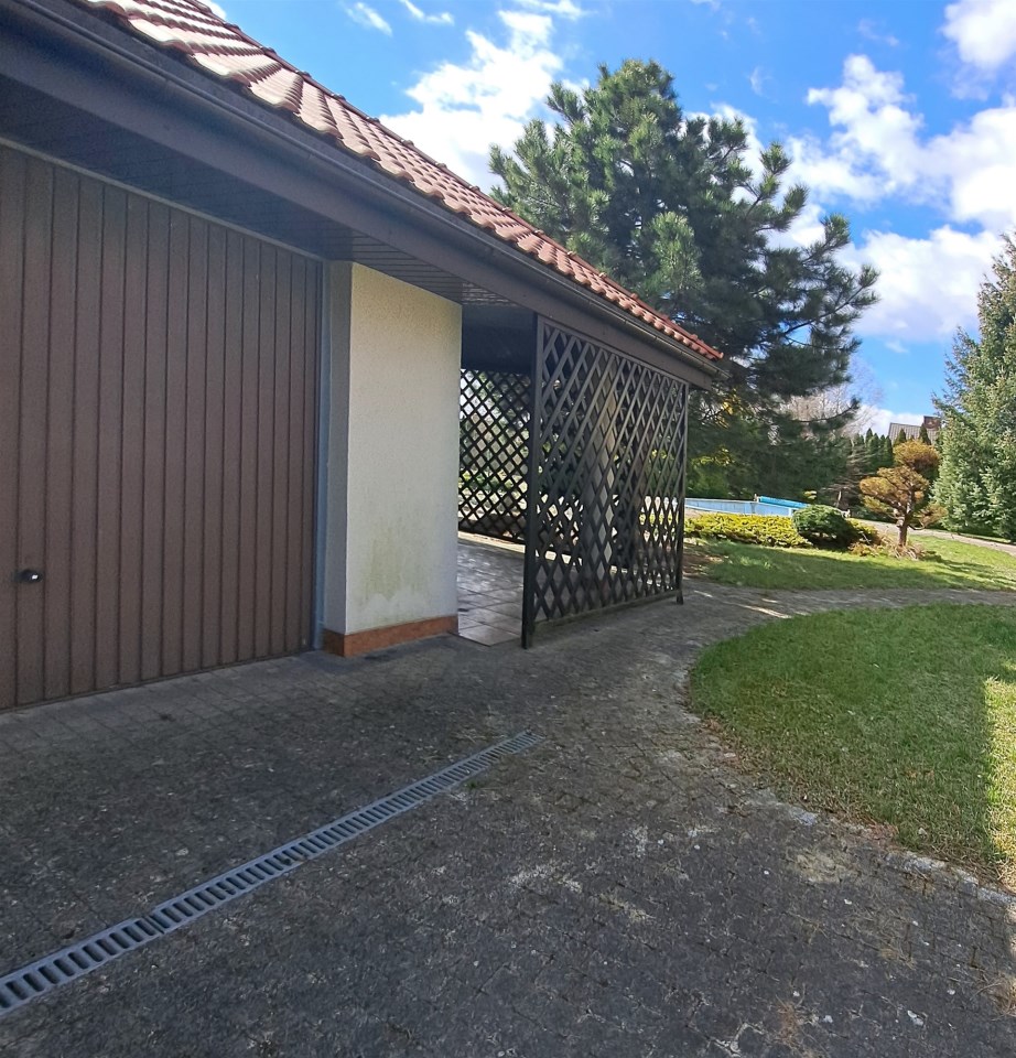 Powierzchnia całkowita domu 300m2, kondygnacje mieszkalne zajmują powierzchnię 200m2, działce znajduje się budynek gospodarczy o powierzchni 40m2z jednostanowiskowym garażem, WC, kuchnią i przyległą zadaszoną altaną. Atrakcją tej oferty jest zewnętrzny basen.
