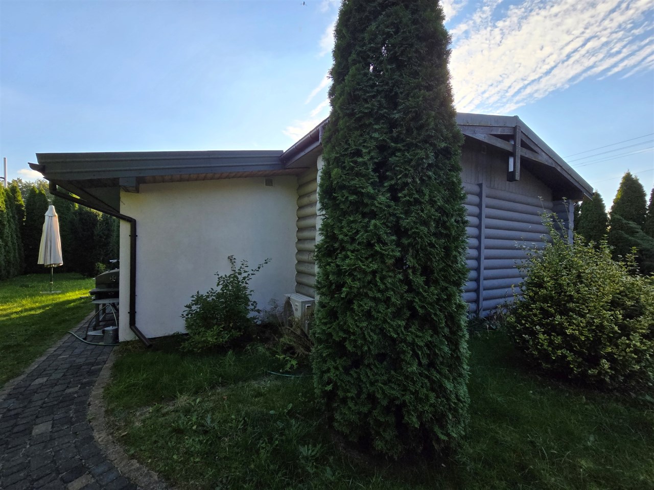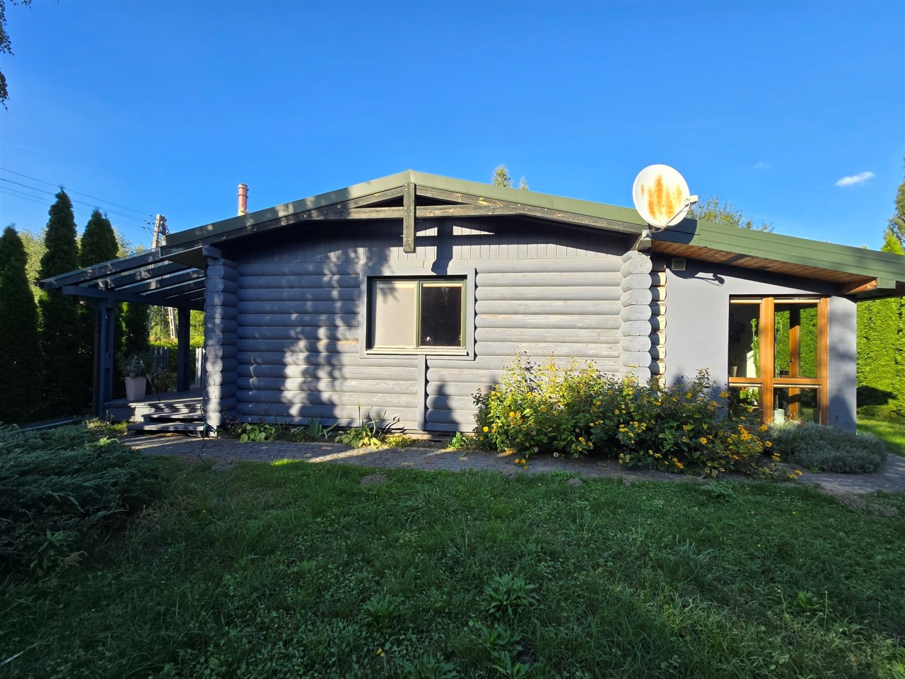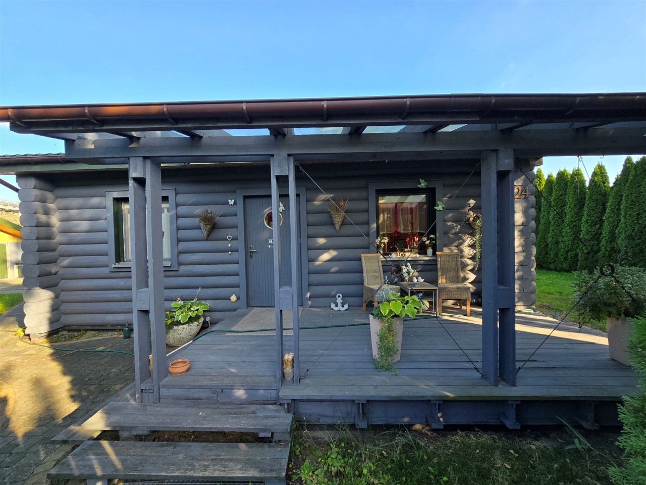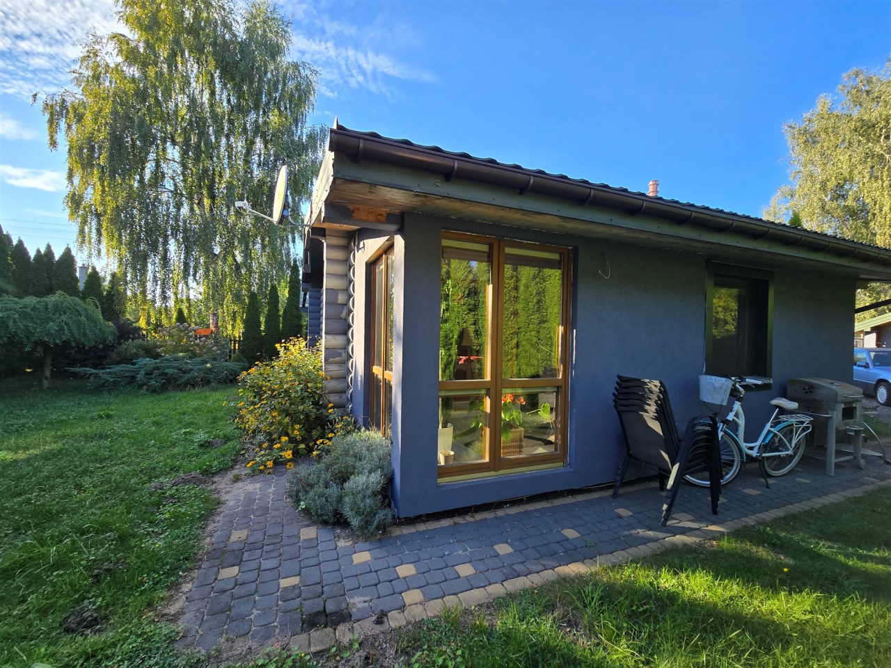 Przykuwający uwagę domek z bala w urokliwej bryle budynku z projektu "Magnus M-Bal".