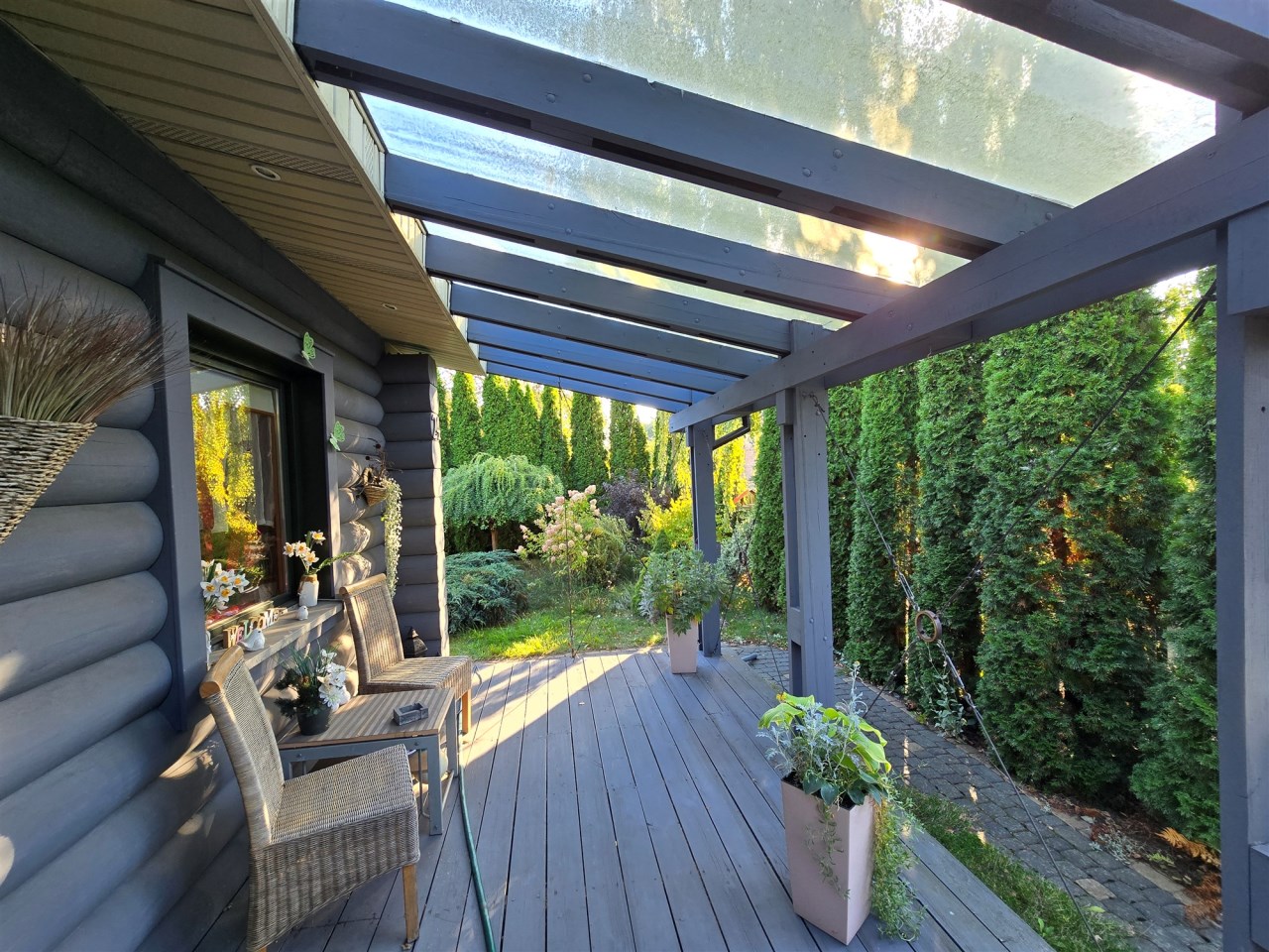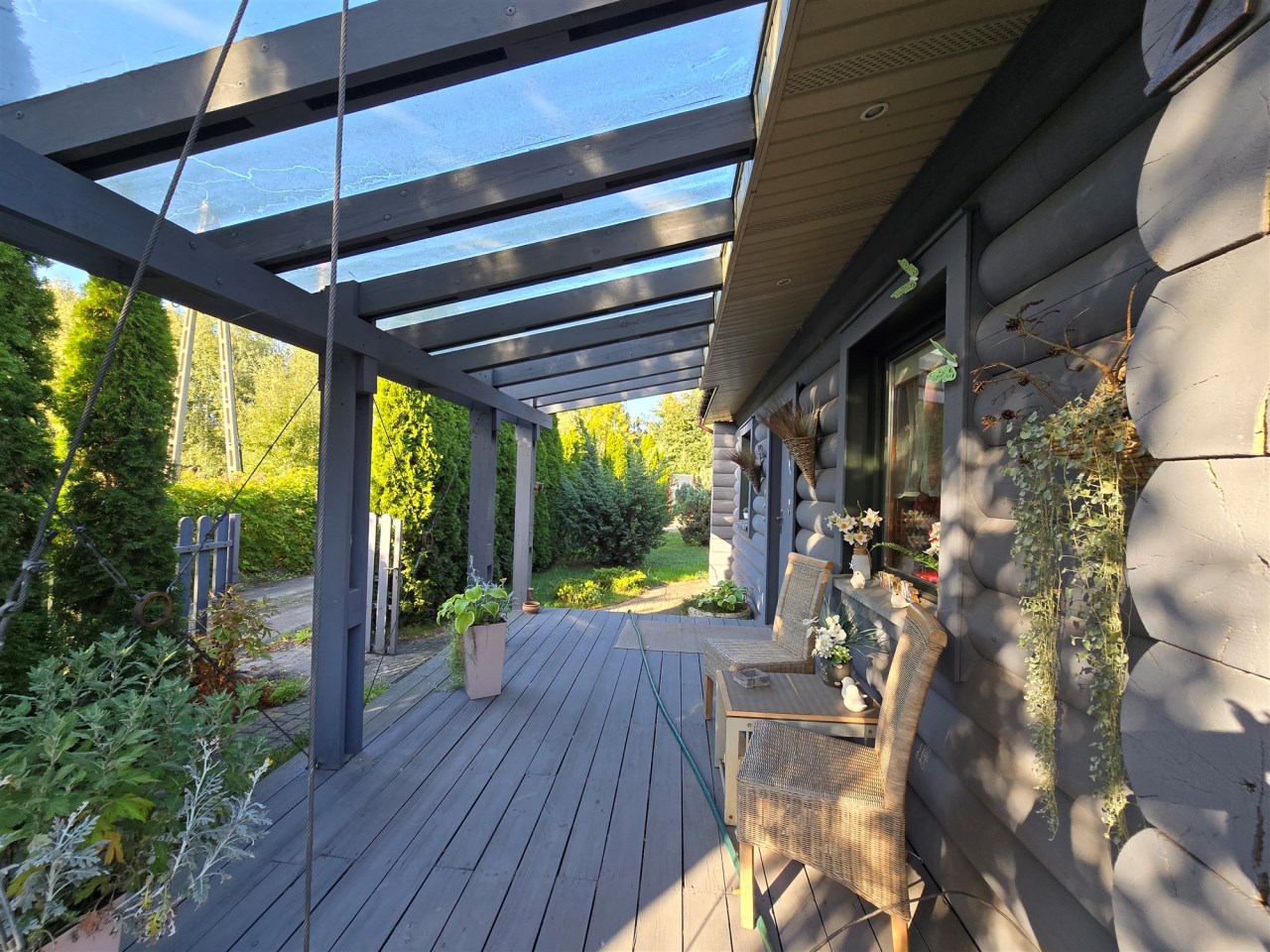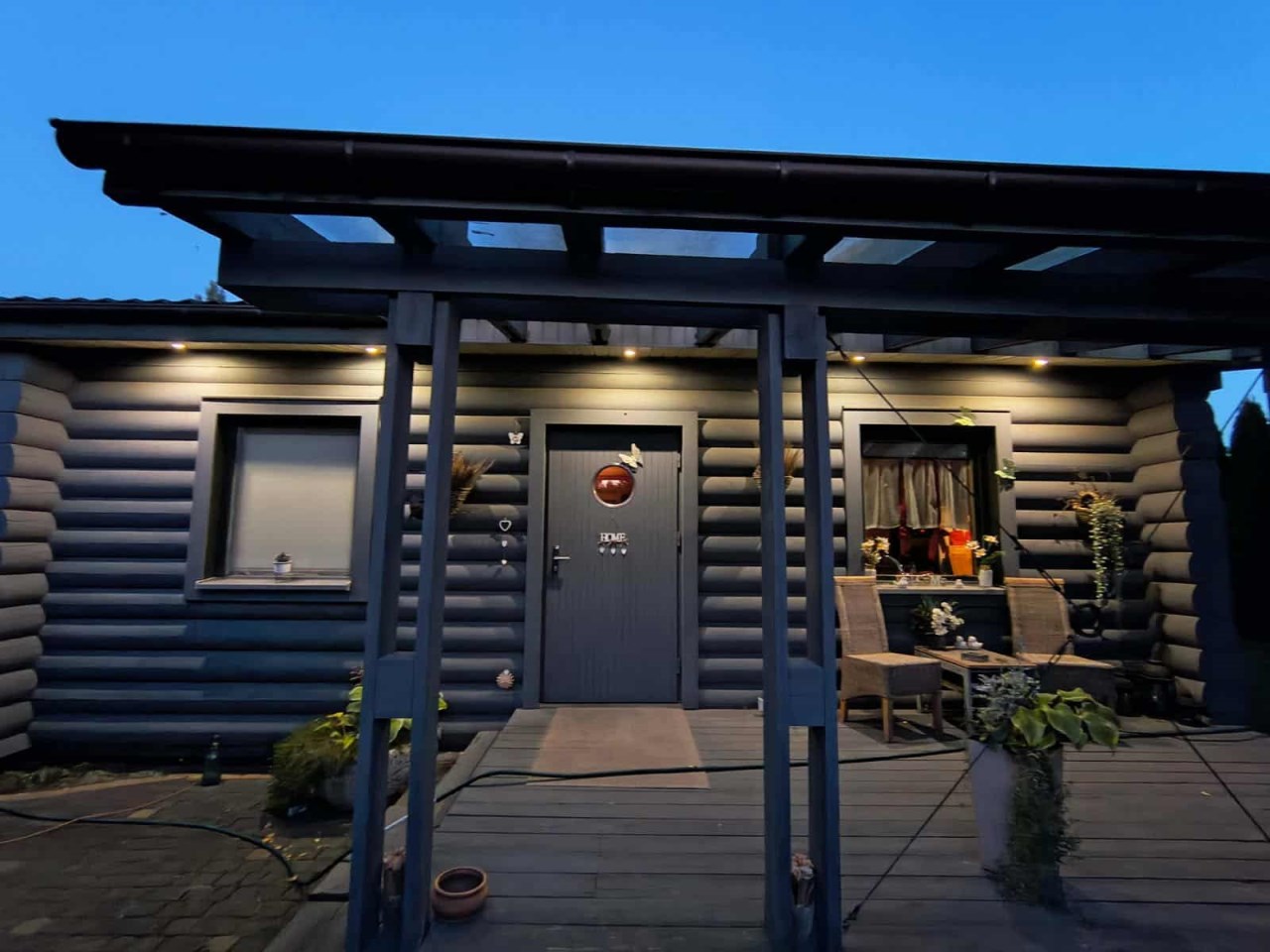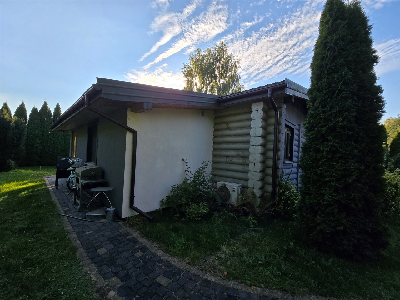 Przykuwający uwagę domek z bala w urokliwej bryle budynku z projektu "Magnus M-Bal".