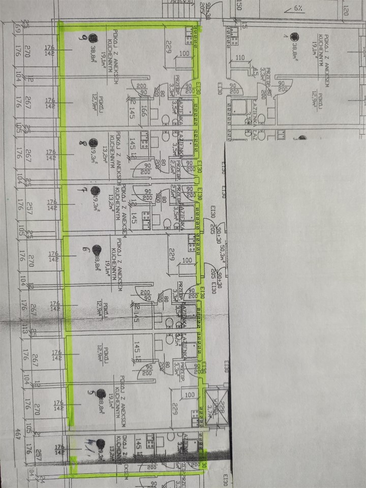 W lokalu znajduje się sześć niezależnych łazienek,liczników prądu,domofonów i drzwi wejściowych.