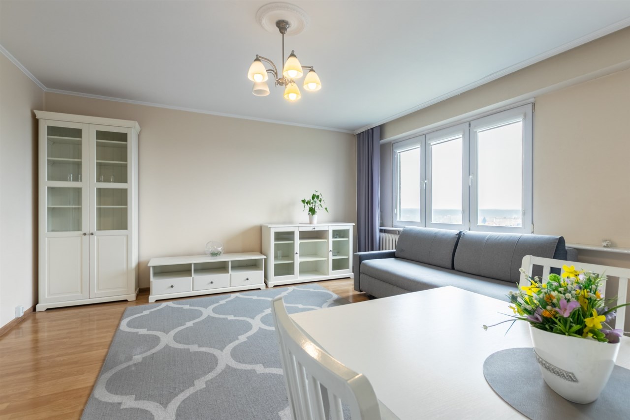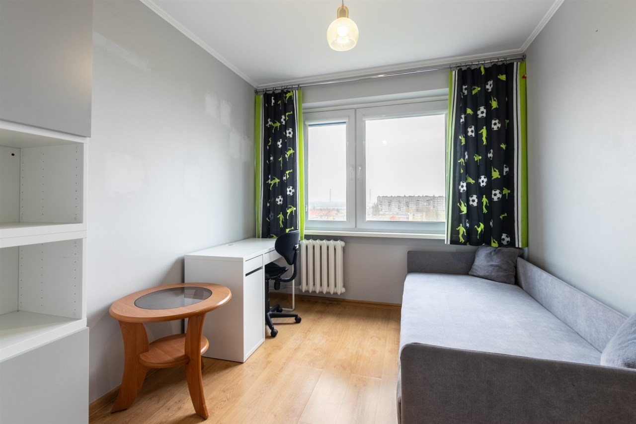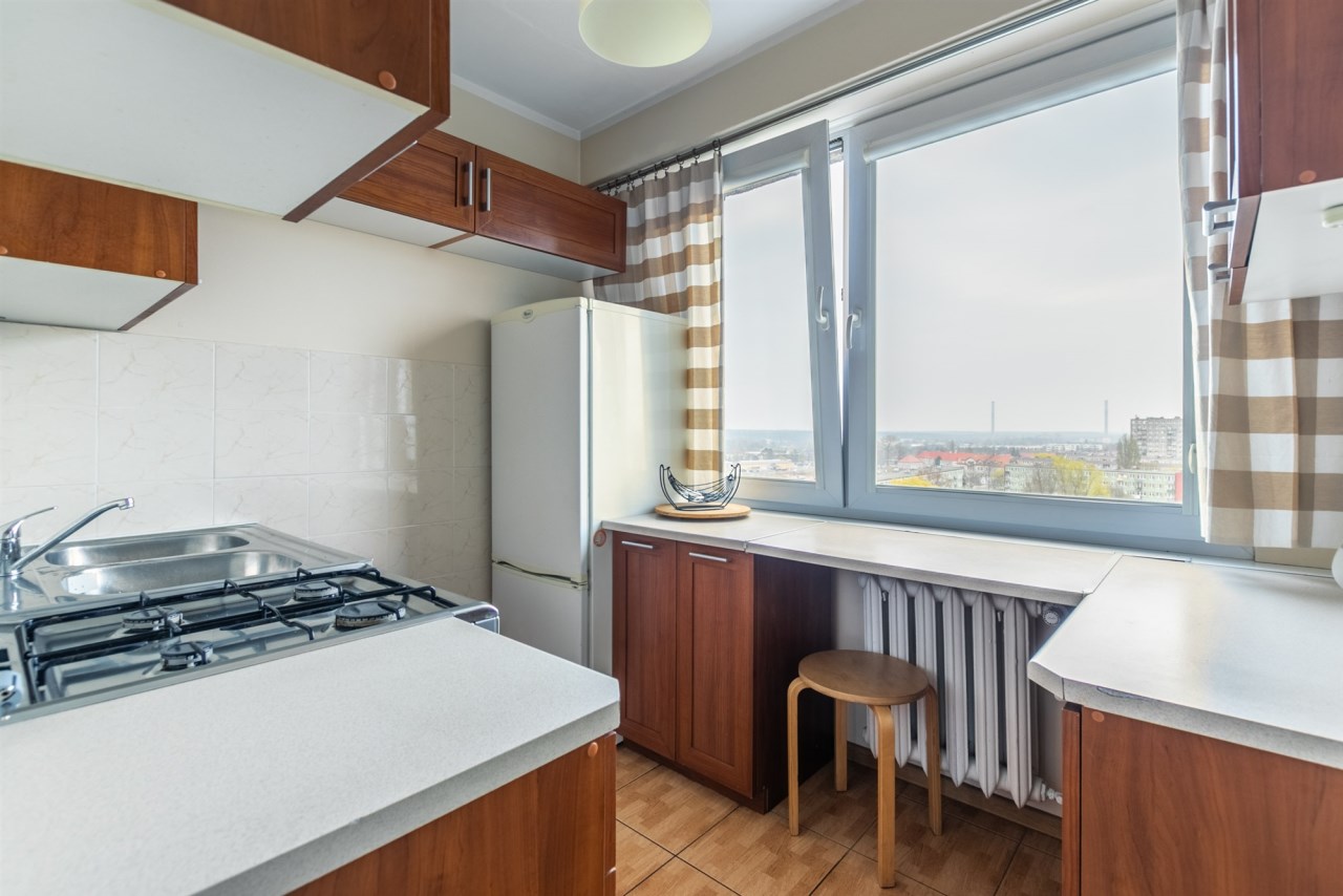 Lokal znajduje się na dziewiątym piętrze. Nieruchomość jest prezentowana w ramach wyłącznej umowy sprzedaży.