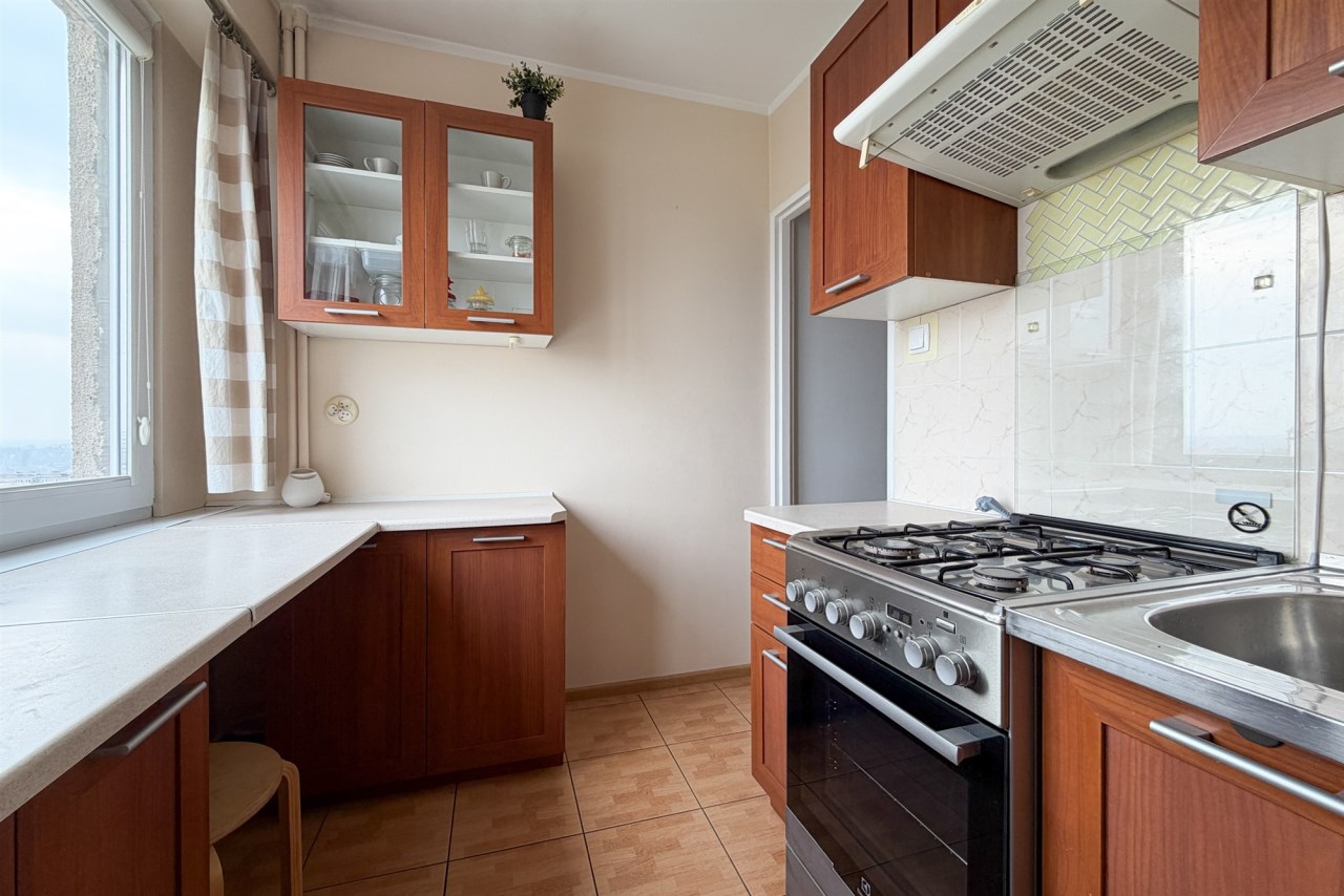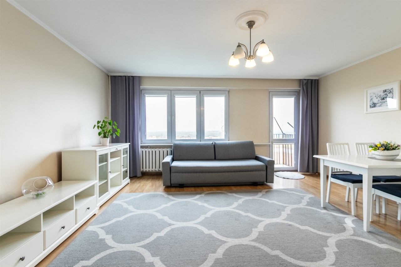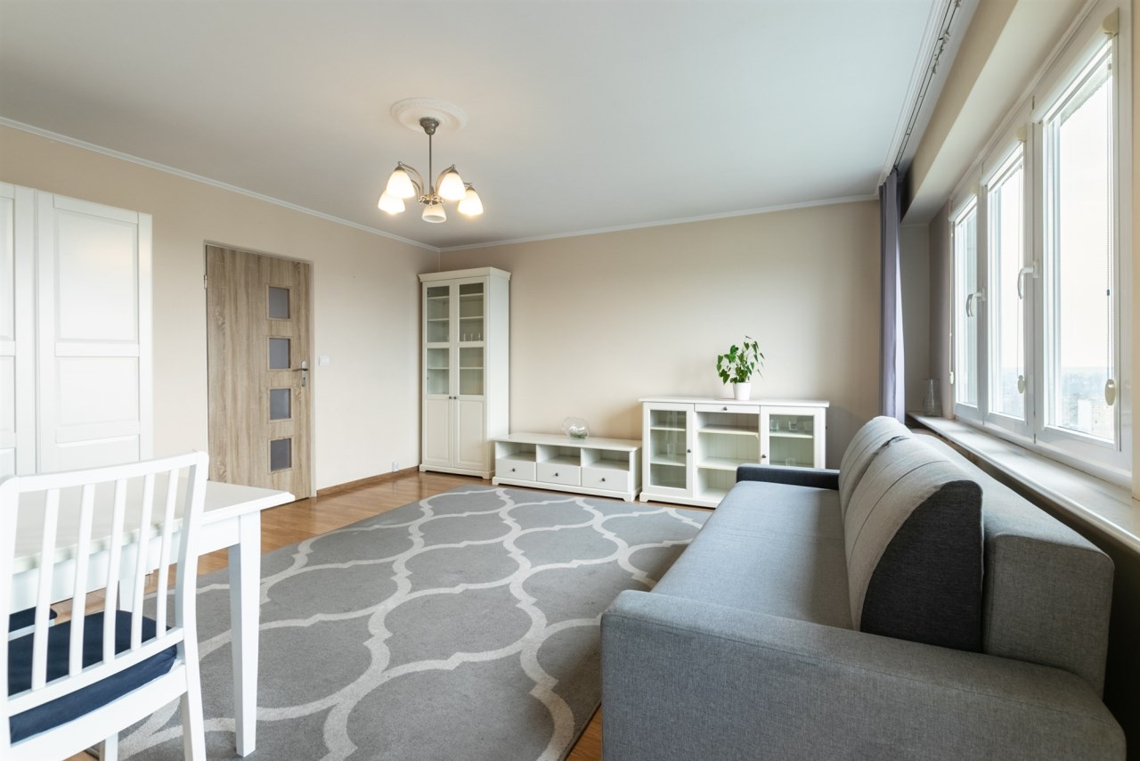 Lokal znajduje się na dziewiątym piętrze. Nieruchomość jest prezentowana w ramach wyłącznej umowy sprzedaży.