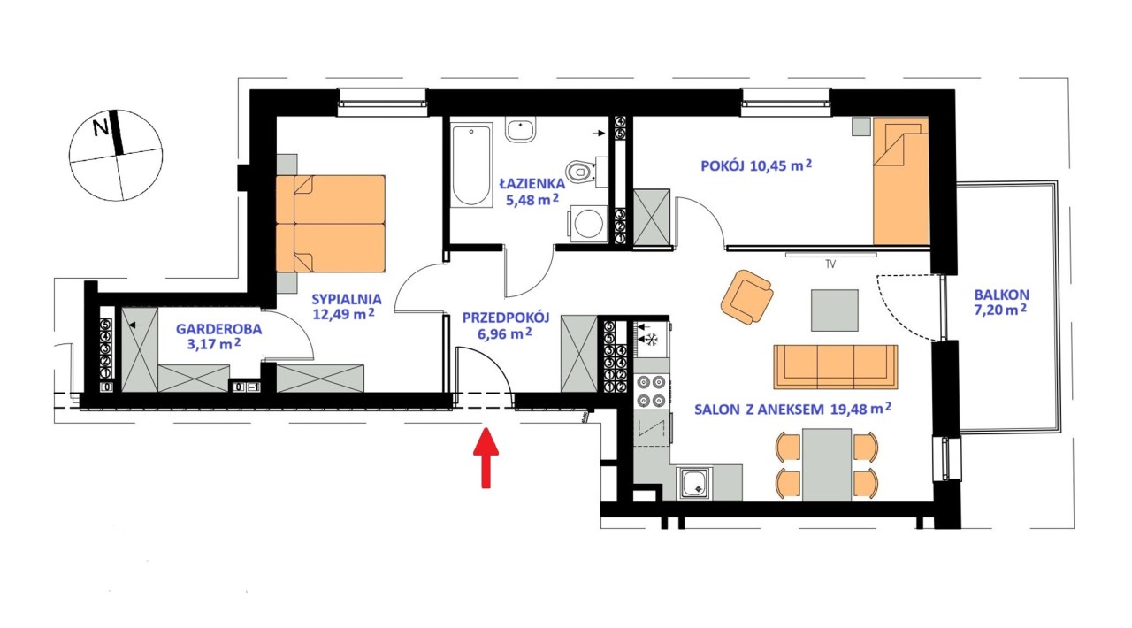 - SALON Z ANEKSEM KUCHENNYM: 19,48 m