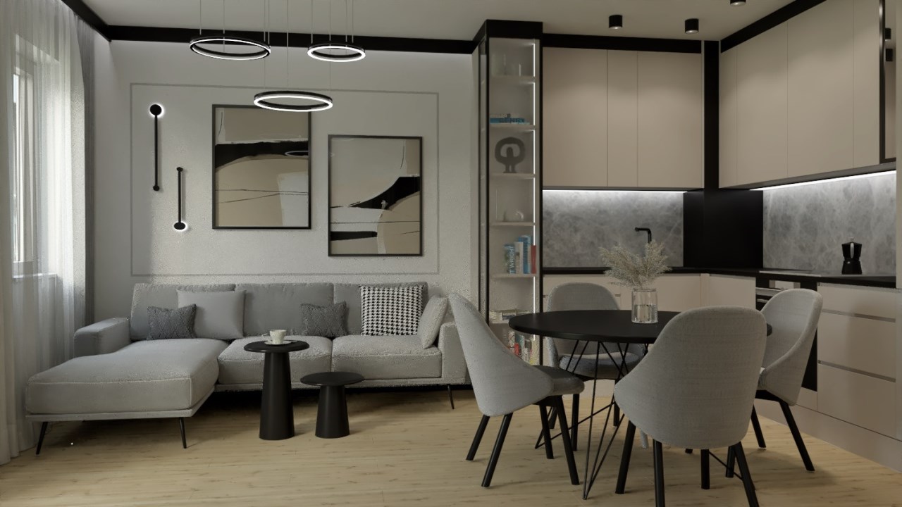 Dla apartamentu przygotowano gotowy projekt architektoniczny wykończenia wg załączonych wizualizacji na zdjęciach !!!