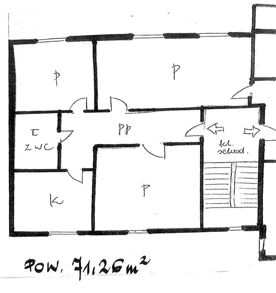 Mieszkanie o pow. 71,26 mkw położone na 2 piętrze, w bloku z cegły, składające się z trzech pokoi, kuchni, łazienki z wc oraz korytarza. Okna PCV. Wystawa okien na dwie strony świata - północ i południe. Mieszkanie jest do remontu, to nowy właściciel będzie miał przyjemność zadecydować o aranżacji wnętrz nabywanego lokalu. Istnieje możliwość powiększenia mieszkania o sąsiedni lokal, uzyskując duże ok. 110-metrowe mieszkanie idealne na własne cele mieszkaniowe, jak również pod wynajem (aż 5 pokoi + kuchnia).