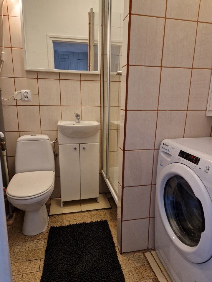 Łazienka: wc, glazura, terakota; kabina prysznicowa, pralka (nowa)