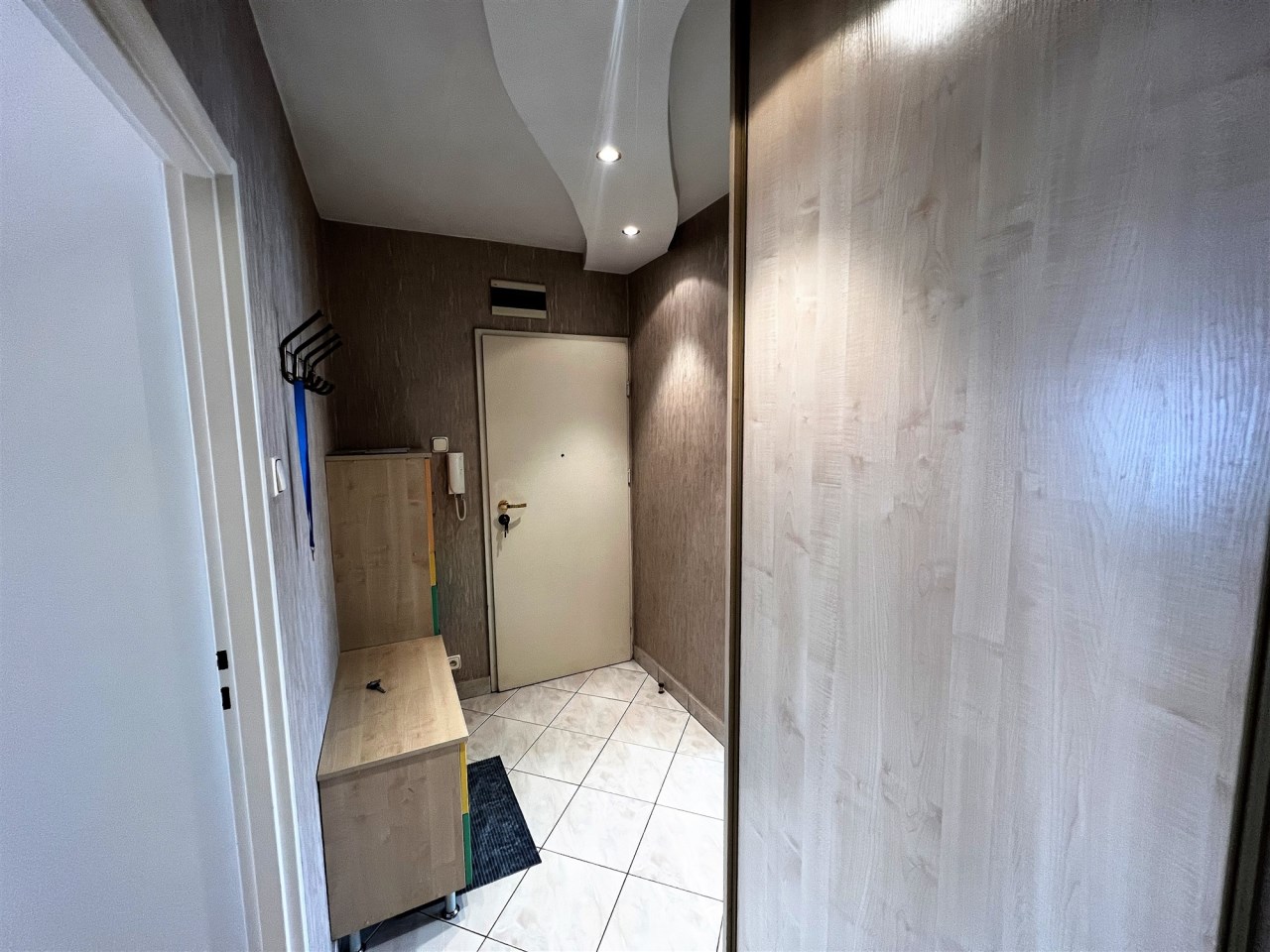 - PRZEDPOKÓJ: terakota, gładzie, szafa typu garderoba, szafka na obuwie,