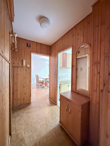- wygodnego przedpokoju w kształcie litery L z pojemnymi szafami.